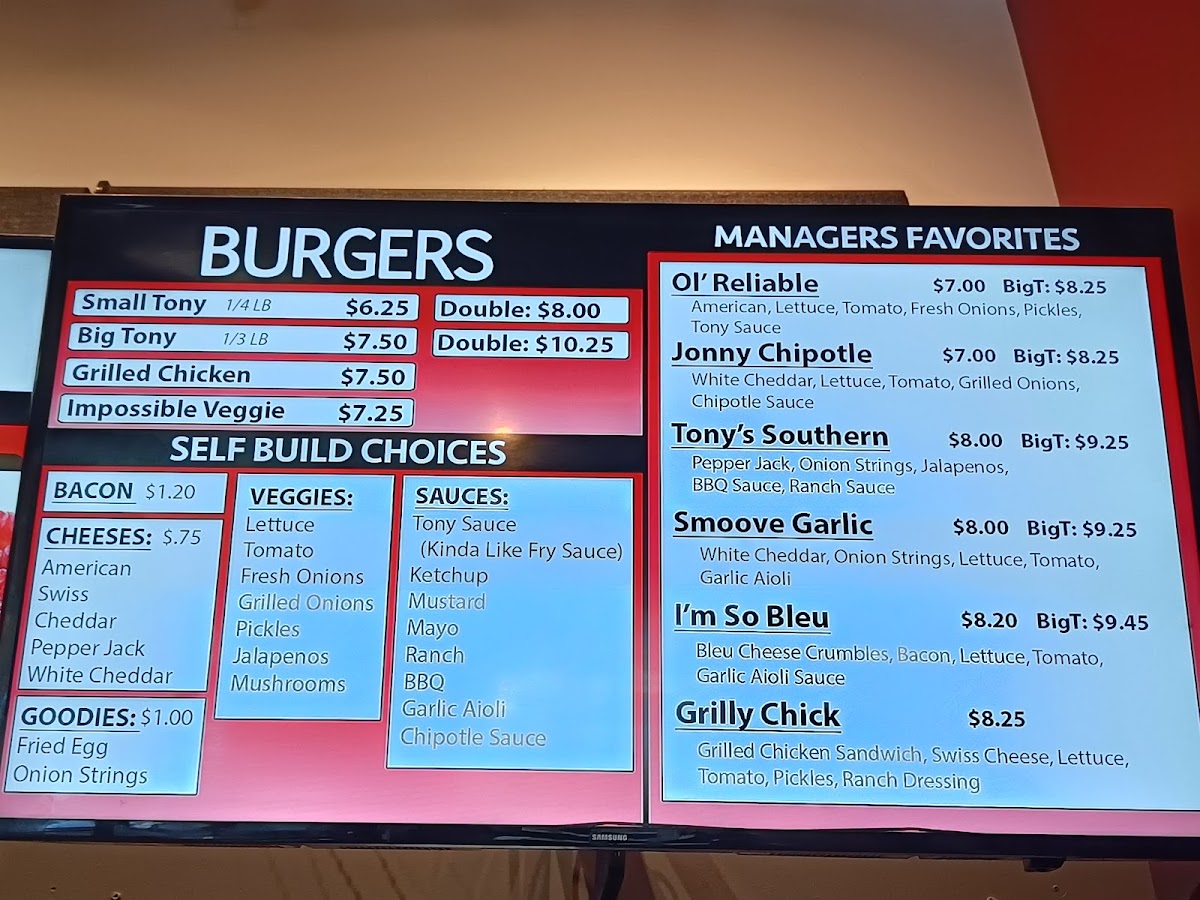 - Customer Service: The staff at Tonyburgers is praised for their friendliness and dedication, often going the extra mile, even late in the evening.